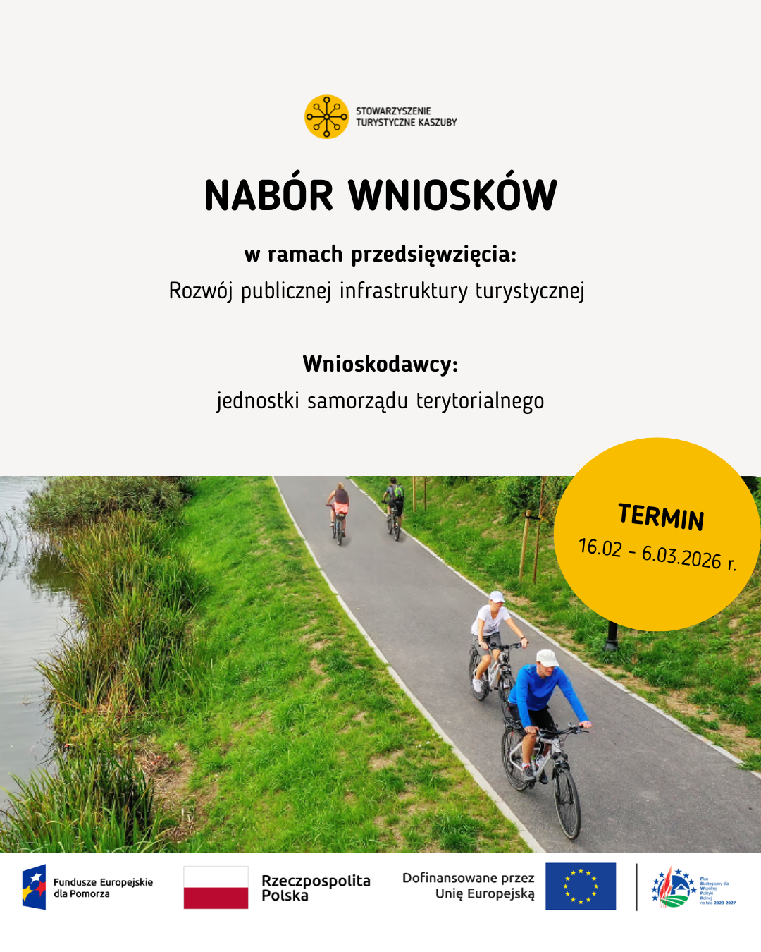 Informujemy, iż na naszej stronie ogłosiliśmy nabór wniosków w ramach:Przedsięwzięcia IV.4. Rozwój publicznej infrastruktury turystycznej.(nr naboru FEPM.06.12-IZ.00-001/26) O dofinansowanie mogą ubiegać się tylko i wyłącznie…